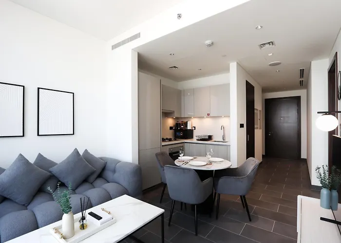 Stylish 1Br With Skyline Views Sobha Crest, Hartland Apartment offers self-catering amenities, such as an equipped kitchenette, and a dining area for guests' convenience. The accommodation is also 4.7 km from Business Bay railway station.